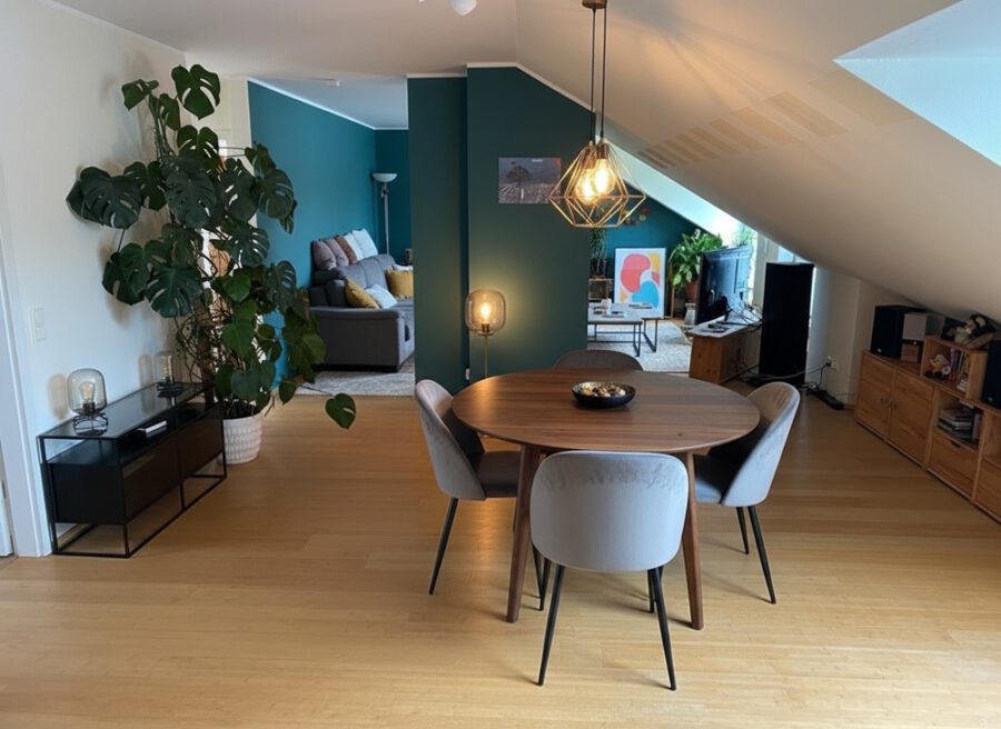 Die angebotene Wohnung befindet sich im Dachgeschoss eines gepflegten Mehrfamilienhauses mit acht Parteien, welches 1965 erbaut und von 2003 bis 2007 einer größeren Modernisierung unterzogen wurde.